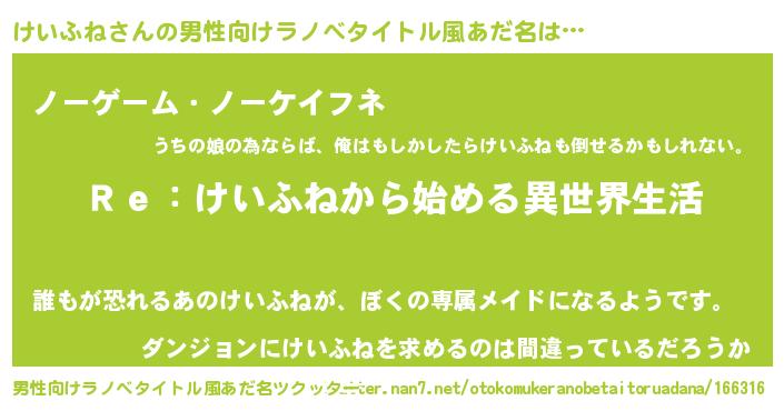 | 女子向けラノベタイトル風あだ名 | 『けいふねストレイドッグス』 |