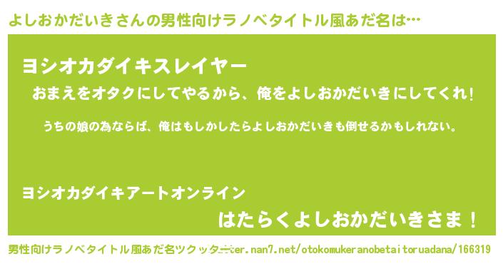 | ファンタジー風あだ名 | 『エターナルヨシオカダイキー』 |