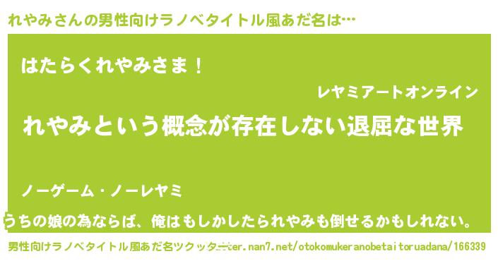 | ヒーロー風カッコイイあだ名 | 『ネオレヤミ』『ウルトラれやみマン』 |