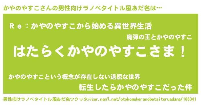 | 意味不明あだ名 | 『自称かやのやすこ』 |