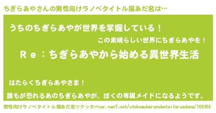 | 意味不明あだ名 | 『自称ちぎらあや』『永久保存ちぎらあや』 |