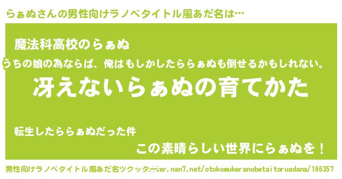 | ヒーロー風カッコイイあだ名 | 『サイバー戦士ラァヌ』『仮面ラァダー』 |
