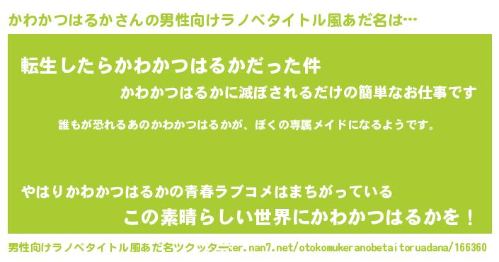 | ヘコむあだ名 | 『かわかつはるか(笑)』『豆乳』 |