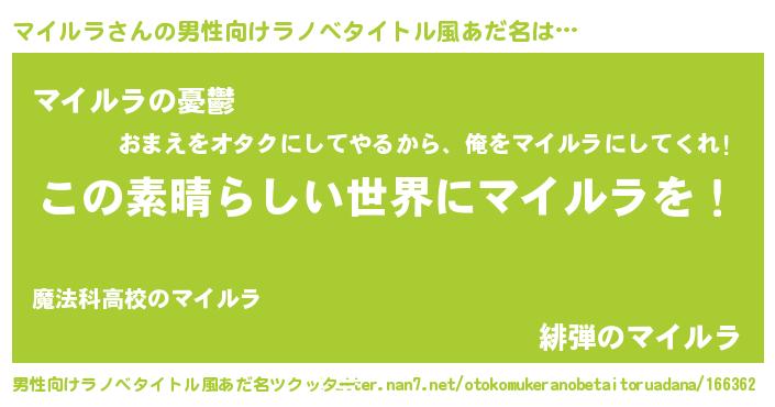 | 意味不明あだ名 | 『住所不定無職マイルラ(4歳)』 |