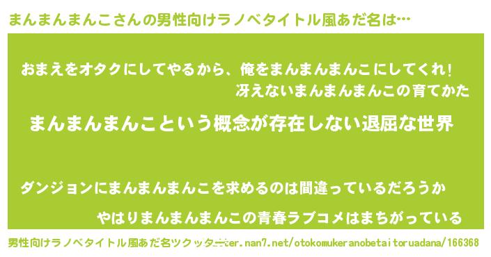 | 胡散臭い通販商品みたいなあだ名 | 『来世でも幸せになれる招き猫…その名も「まんまんまんこ」』 |