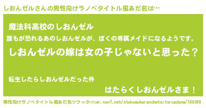 | 女子向けラノベタイトル風あだ名 | 『しおんゼル様がみてる』 |