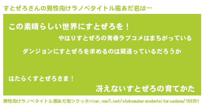 | 料理風あだ名 | 『すとぜろの豆乳スープ』 |