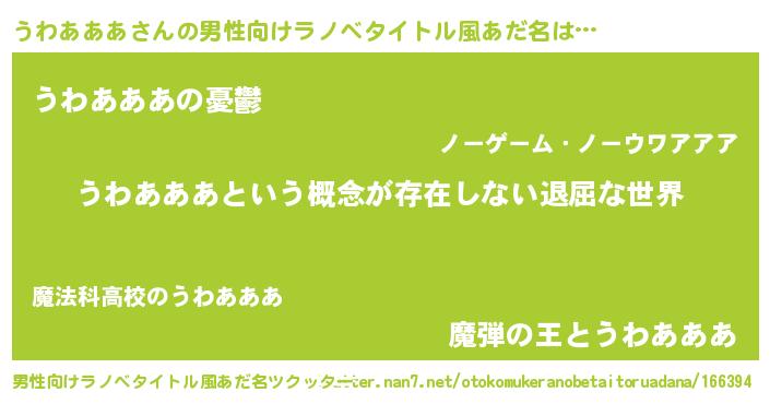 | ヘコむあだ名 | 『うわあああ(震え声)』『うわふぇ~』 |