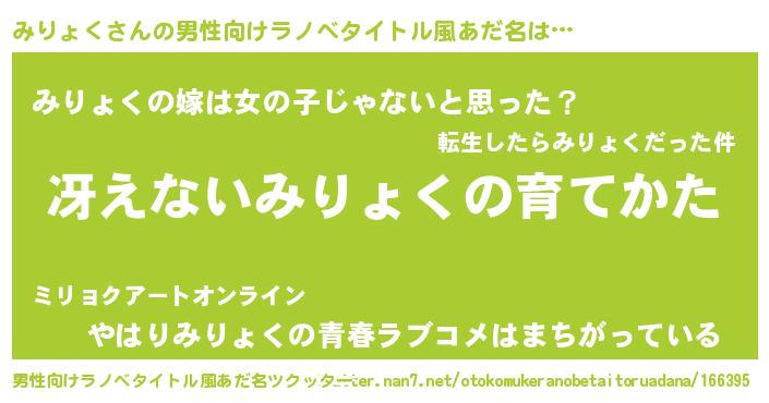 | ヘコむあだ名 | 『みりっぺ』『レバニラ』『みりにー』 |