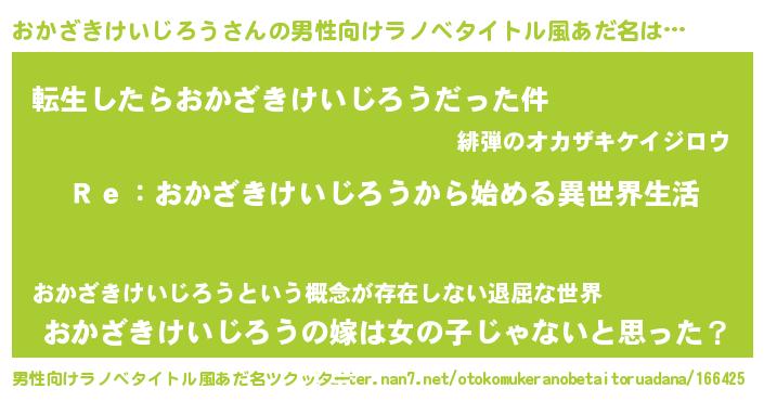 | 女子向けラノベタイトル風あだ名 | 『おかざきけいじろうストレイドッグス』 |