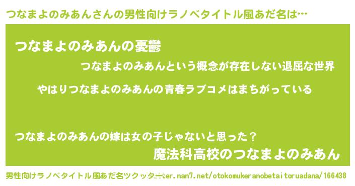 | 意味不明あだ名 | 『つなまよのみあんフォーエバー』 |