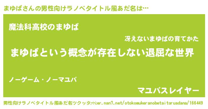 | ファンタジー風あだ名 | 『マユディッシュ』『ゼマユトゥ』 |
