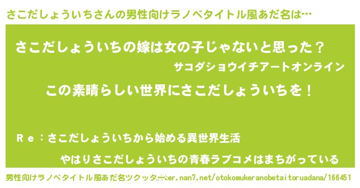 | 意味不明あだ名 | 『住所不定無職さこだしょういち(85歳)』 |