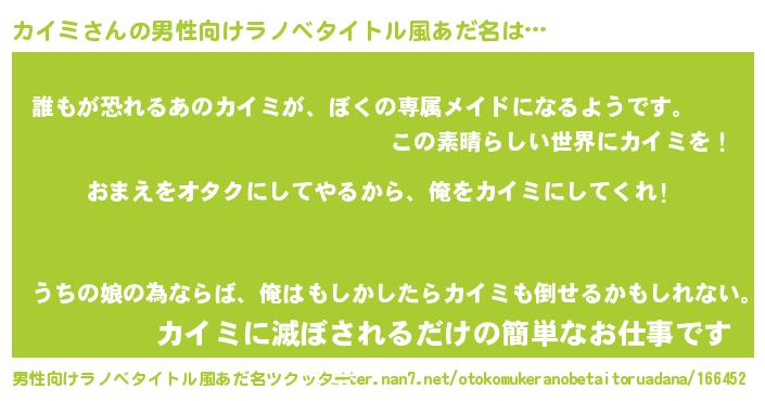| ヒーロー風カッコイイあだ名 | 『正義の使者カイミ』『ネオカイミ』 |