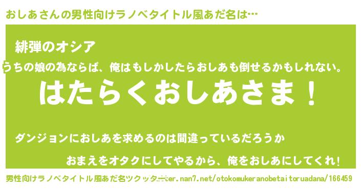 | ヒーロー風カッコイイあだ名 | 『正義の使者おしあ』『魔戒騎士オシ』 |