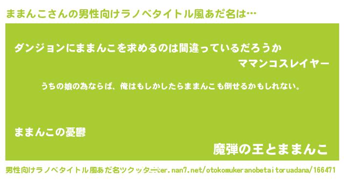 | 胡散臭い通販商品みたいなあだ名 | 『運命の人と巡り会える高級そうな絵画…その名も「ままんこ」』 |