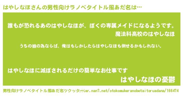 | 女子向けラノベタイトル風あだ名 | 『はやしなほの婚約者』 |