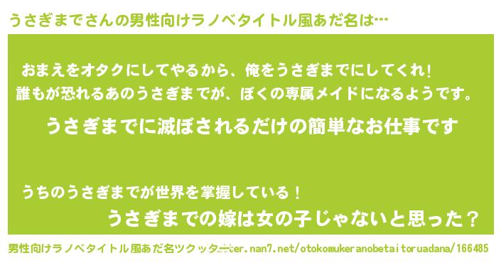 | ヘコむあだ名 | 『うさぷりん』『うさぎまで(小並感)』 |
