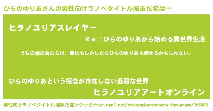 | ファンタジー風あだ名 | 『エターナルヒラノユリアー』 |