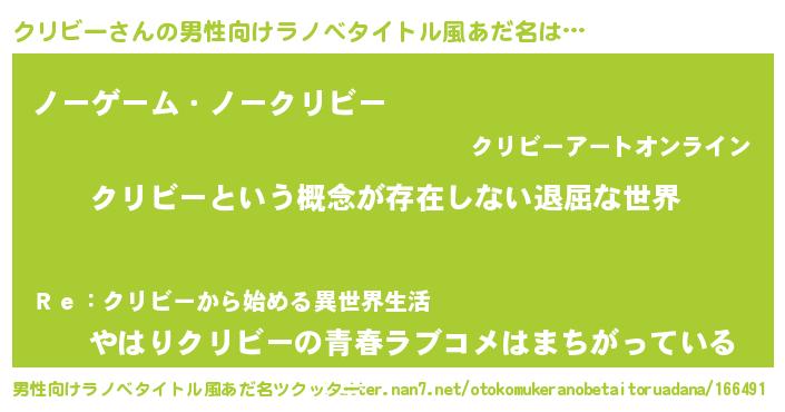| 女子向けラノベタイトル風あだ名 | 『クリビーの契約王妃』『クリビー恋絵巻』 |