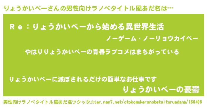 | ファンタジー風あだ名 | 『エターナルリョウカイベーー』 |