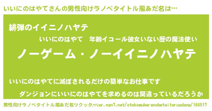 | ヒーロー風カッコイイあだ名 | 『慈愛の使者いいにのはやて』 |