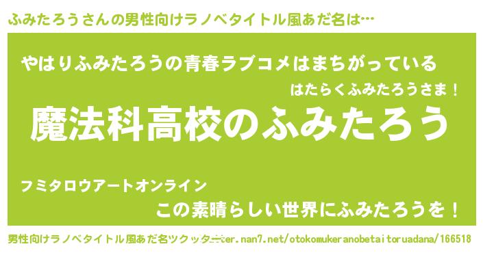 | ヒーロー風カッコイイあだ名 | 『超時空戦士フミタロウ』『仮面フミダー』 |