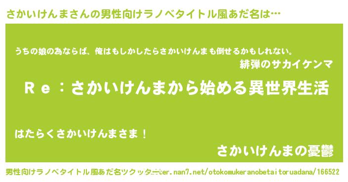 | 意味不明あだ名 | 『自称さかいけんま』 |