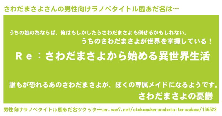 | 女子向けラノベタイトル風あだ名 | 『さわだまさよストレイドッグス』 |