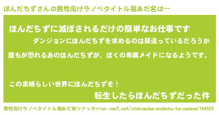 | 胡散臭い通販商品みたいなあだ名 | 『来世でも幸せになれる健康食品…その名も「ほんだちず」』 |