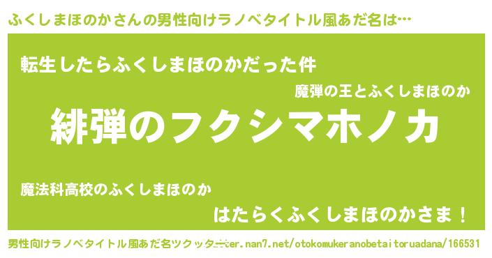 | 女子向けラノベタイトル風あだ名 | 『シンデレラふくしまほのか家の靴箱館』 |