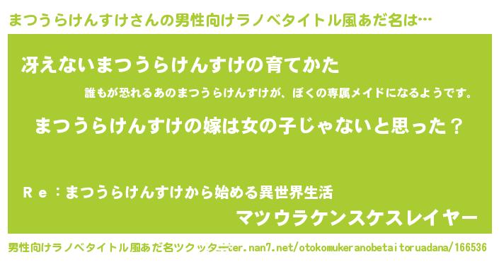 | ヒーロー風カッコイイあだ名 | 『幻影騎士マツ』『ネオマツウラケンスケ』 |