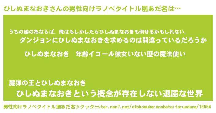 | 胡散臭い通販商品みたいなあだ名 | 『運命の人と巡り会える高級そうな壺…その名も「ひしぬまなおき」』 |