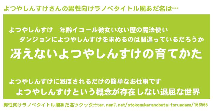 | 女子向けラノベタイトル風あだ名 | 『シンデレラよつやしんすけ家の靴箱館』 |