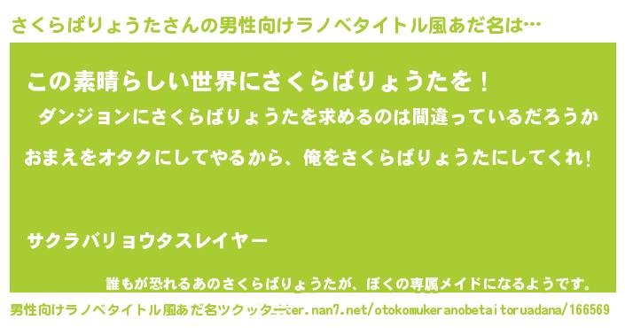 | 女子向けラノベタイトル風あだ名 | 『さくらばりょうた恋絵巻』 |