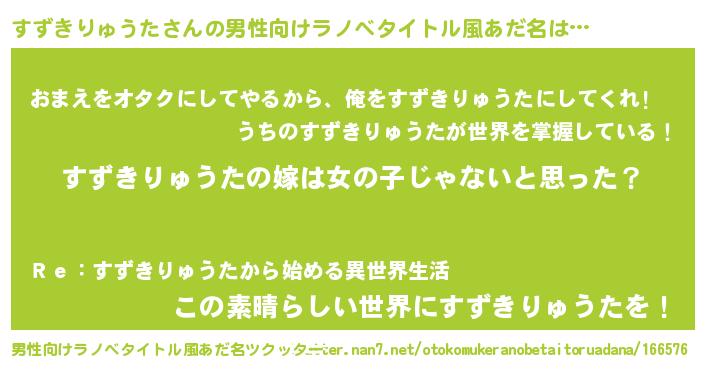 | 女子向けラノベタイトル風あだ名 | 『すずきりゅうた様がみてる』 |