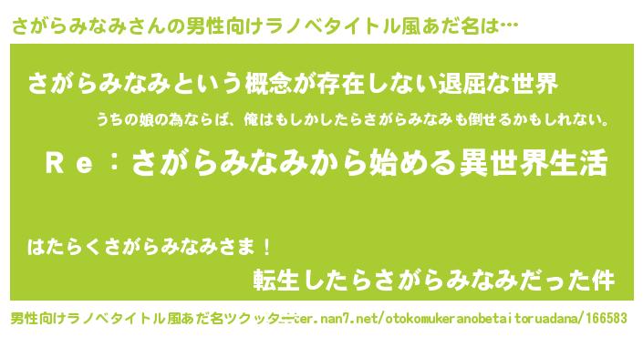 | 女子向けラノベタイトル風あだ名 | 『さがらみなみストレイドッグス』 |