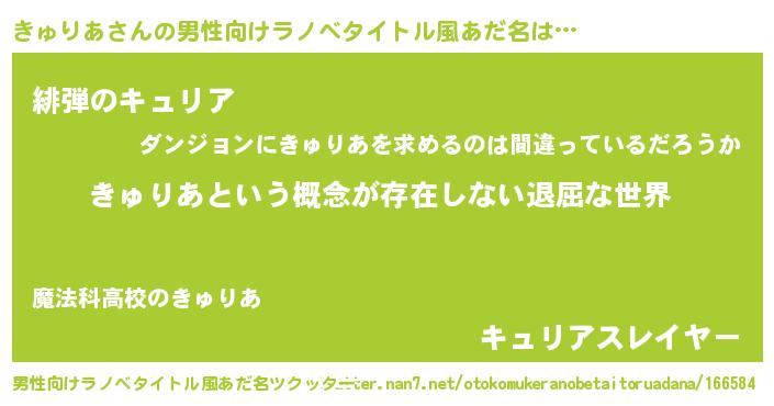 きゅりあさんの男性向けラノベタイトル風あだ名をツクッター!