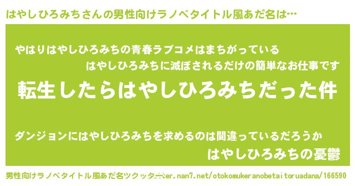 | 胡散臭い通販商品みたいなあだ名 | 『世界が平和になる高級そうな絵画…その名も「はやしひろみち」』 |