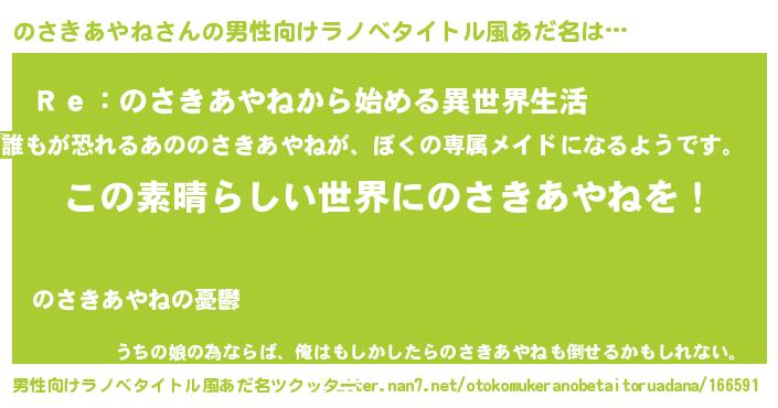 | 胡散臭い通販商品みたいなあだ名 | 『あなたにだけ特別に提供する100年もののヴィンテージワイン…その名も「のさきあやね」』 |