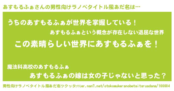 | 意味不明あだ名 | 『住所不定無職あすもるふぁ(56歳)』 |