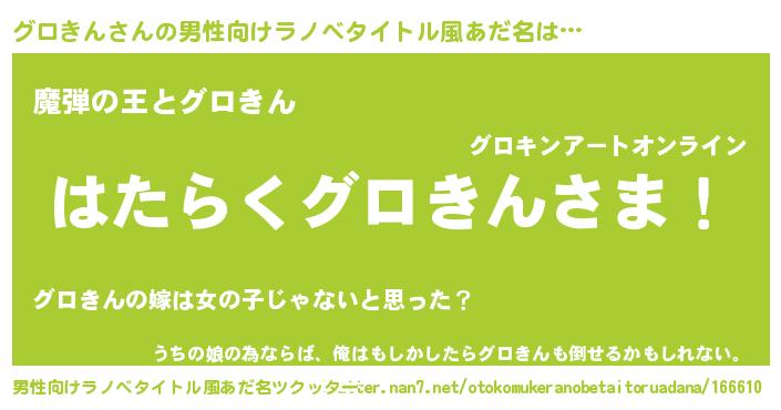 | ヒーロー風カッコイイあだ名 | 『仮面グロダー』『ウルトラグロきんマン』 |