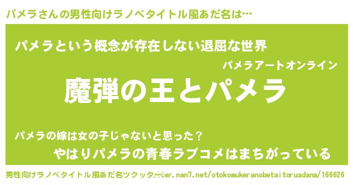 | 意味不明あだ名 | 『住所不定無職パメラ(65歳)』 |