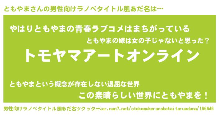 | 女子向けラノベタイトル風あだ名 | 『ともやま姫と円卓の騎士』 |