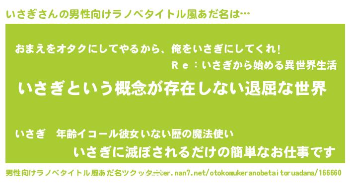 | 意味不明あだ名 | 『永久保存いさぎ』『自称いさぎ』 |