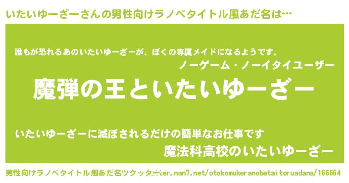 | 伝説のあだ名 | 『古より伝わる吟遊詩人いたいゆーざー』 |