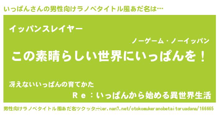 | 意味不明あだ名 | 『住所不定無職いっぱん(10歳)』 |