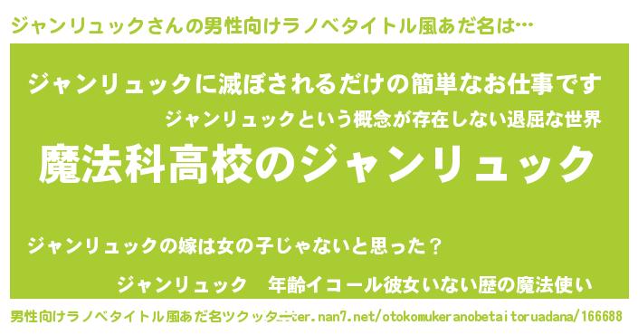 | 女子向けラノベタイトル風あだ名 | 『ジャンリュックなんてお断りですっ。』 |