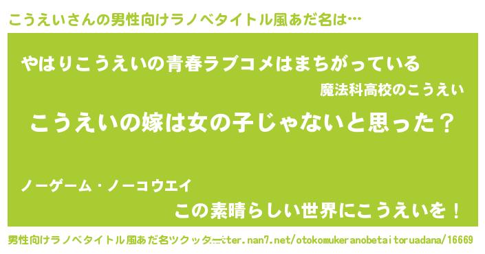 | ヒーロー風カッコイイあだ名 | 『炎刃騎士コウ』『ウルトラこうえいマン』 |