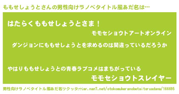 | 胡散臭い通販商品みたいなあだ名 | 『信頼と実績のネックレス…その名も「ももせしょうと」』 |